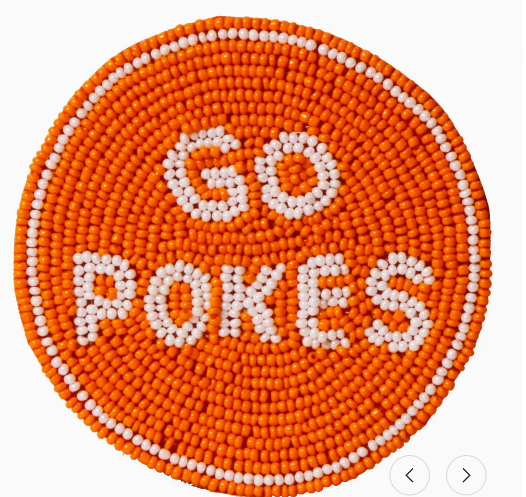 Elevate your game day outfit with the Oklahoma State OSU Cowboys Beaded Button in Orange and White by Desden. Adorned with team colors and intricate beadwork, this button is the perfect way to show off your team spirit. Stand out from the crowd and support your favorite team in style!