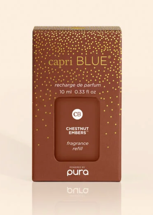 Looking for the ultimate holiday fragrance? Presenting Chestnut Embers! This Chestnut Embers Pura Refill features notes of roasted chestnut, bitter orange, black cardamom, tonka bean and ember musk. Just pop it into your Pura device for delicious holiday vibes.
