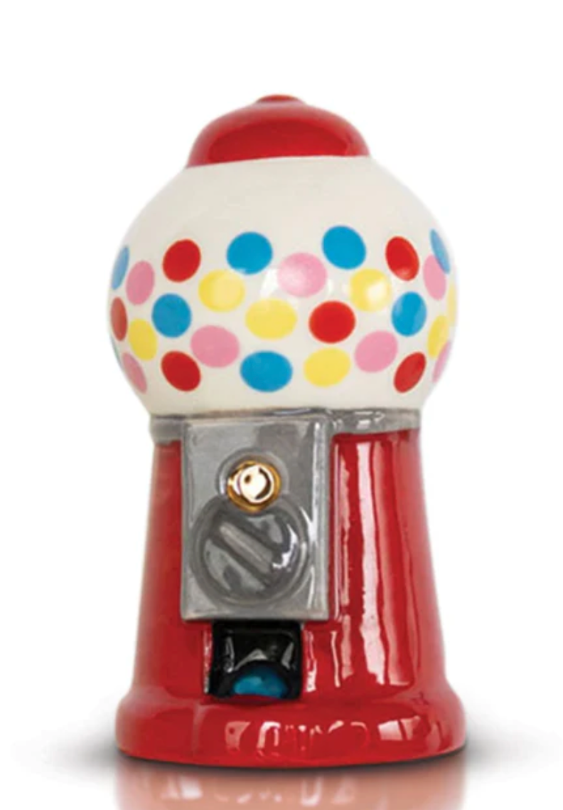 a nostalgic, vintage-style gumball machine filled with multi-color gumballs.
