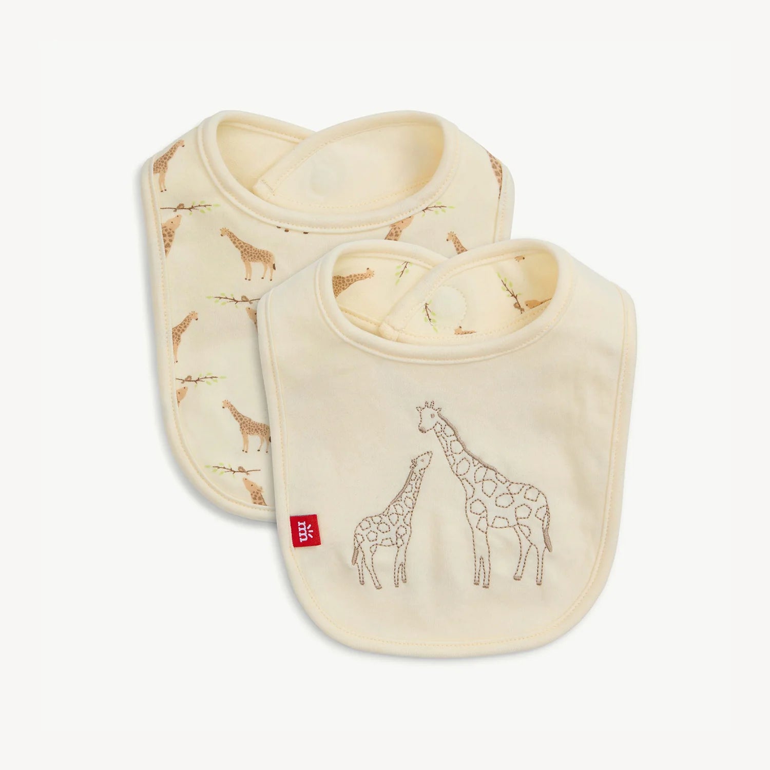 Our organic cotton Magnetic Reversible Bib 2-Pack protects baby's outfit with soft, absorbent, GOTS-certified organic cotton. Plus, the magnet strategically placed at the back makes it seriously easy to put on and take off. The bib is both casual and fancy with a lively print on one side and beautiful embroidery on the other.