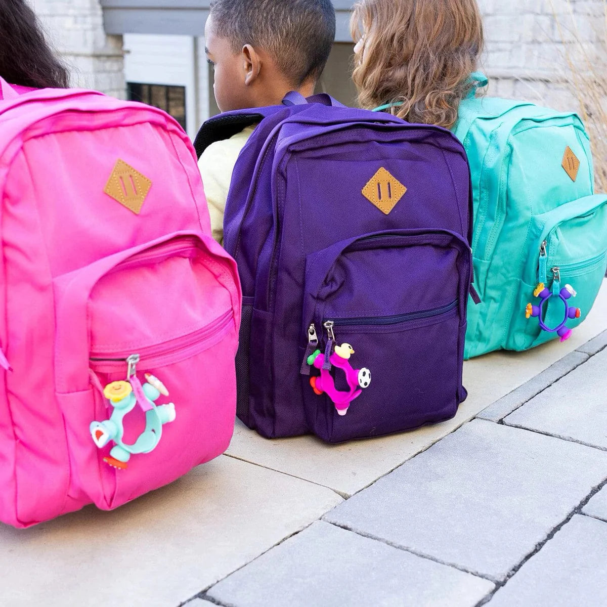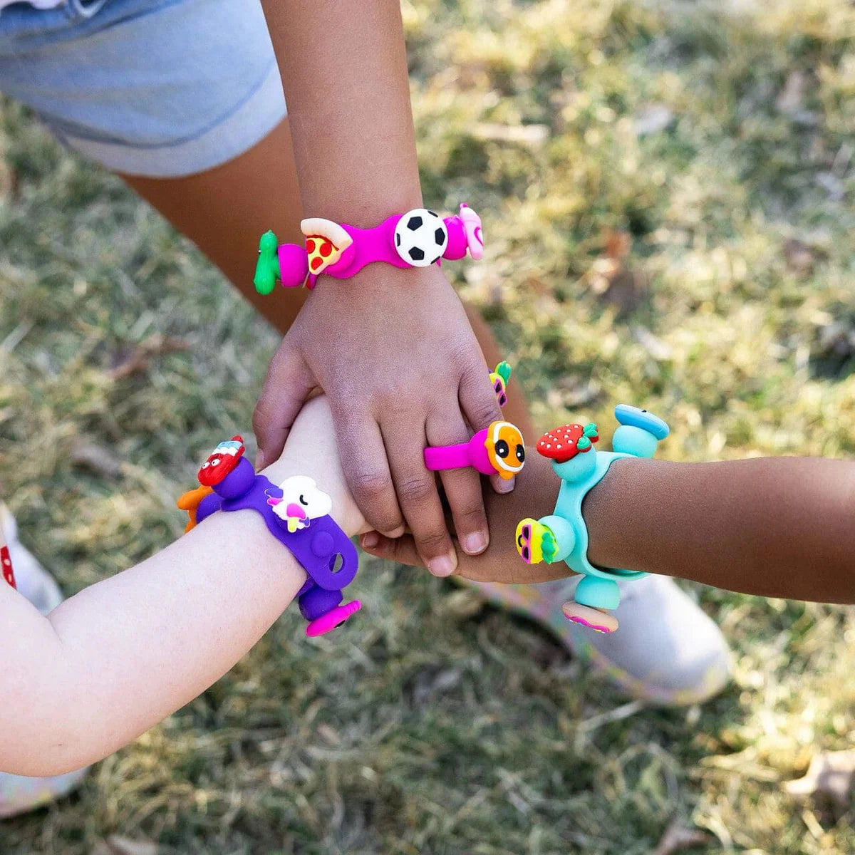 Pick your favorite charms and fit them into the sockets of the silicone bracelet and ring. It's a playful way to accessorize - on your wrists and fingers or even on a backpack - and when you pull them out, they make the most satisfying "POP!" Each set comes with a bracelet, a ring, and eight unique charms. Collect them all. Trade them with your friends. Let your personality POP with Plip Charms!