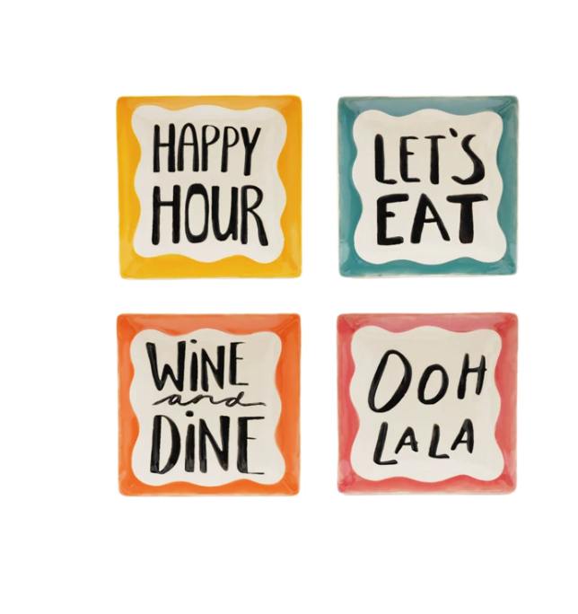 5" Square Stoneware Dish w/ Wax Relief Culinary Saying, Multi Color, 4 Styles