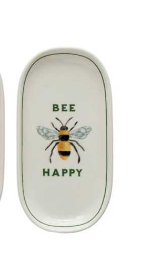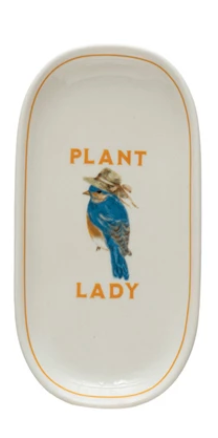 6"L x 3-1/4"W Oval Stoneware Plate w/ Garden Image & Saying