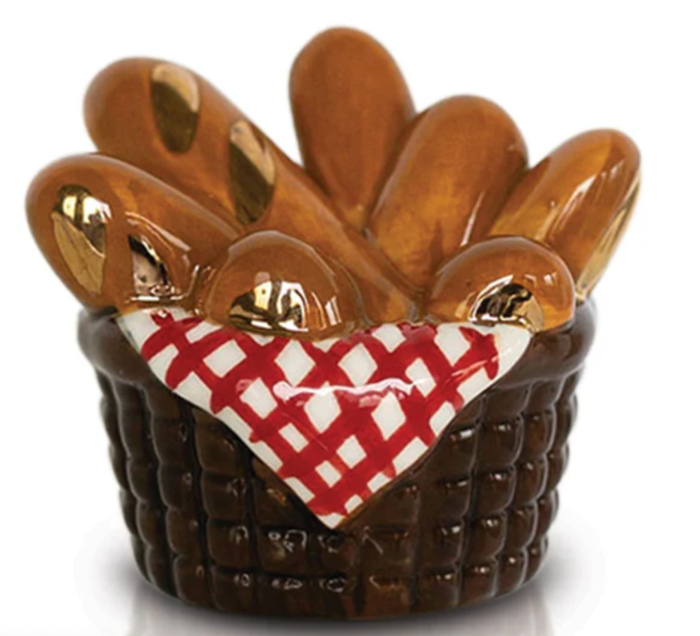 a cozy basket brimming with enticing bread in a red gingham napkin.